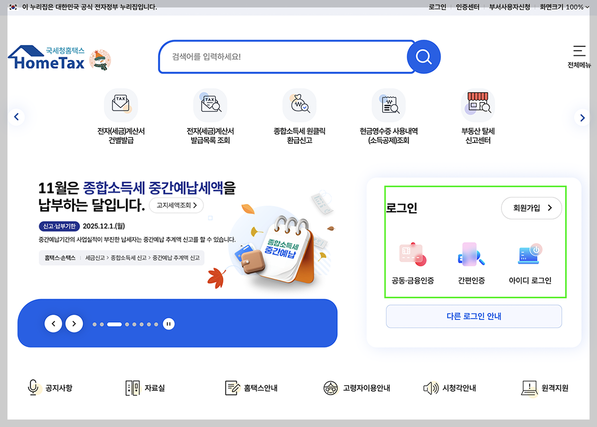 (1) 홈택스 로그인  (https://www.hometax.go.kr)