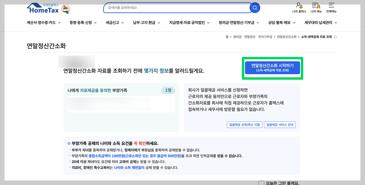 (1) 자료 확인 국세청 홈택스 간소화 서비스에서 공제자료 확인